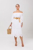 Платье свободной формы из струящейся ткани. Длина миди. Воротник рубашечный. Застежка по переду на кнопки. Длина застежки до талии. По спинке кокетка. В боковых швах карманы. Рукава длинные с манжетой по низу. По передней части рукав с застежкой на кнопки. В комплекте съемный ремень с пряжкой.