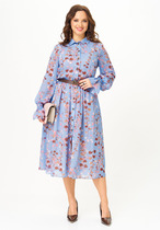 Платье полуприлегающего силуэта с вертикальными рельефами. Длина миди. Кокетка спереди и по спинке. Застёжка спереди на петли и пуговицы. Воротник рубашечный. Рукав прямой, понизу широкая манжета (8 см). Манжета с застёжкой на петли и пуговицы. В боковых швах карманы. Платье на подкладке. В комплекте съёмный ремень.