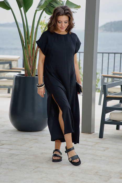 Платье женское летнее для повседневной носки и торжественных случаев из ткани «купра» без подкладки полуприлегающего силуэта по геометрическому подобию напоминает трапецию, расширяющуюся к низу. Пластическая форма мягкая, плавная.