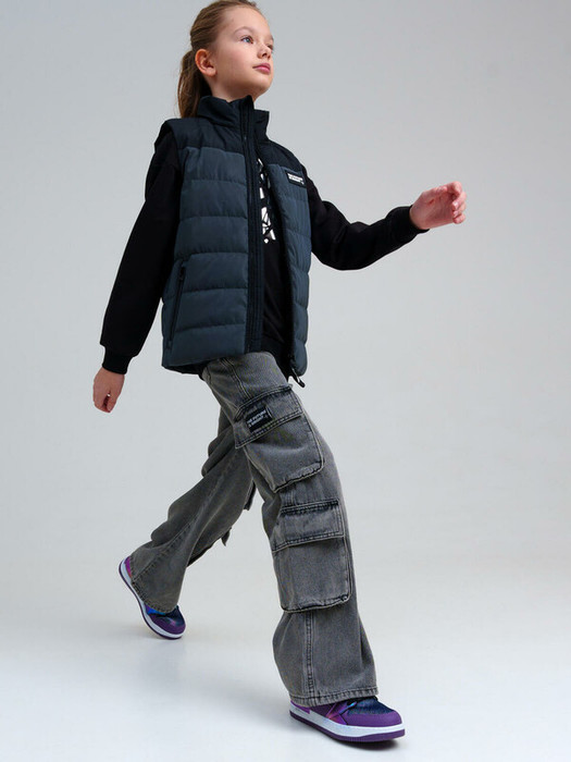 Джинсы для девочки подростка.  WIDE LEG - свободная посадка и расклёшенные от бедра штанины. Высокая посадка. Внутренняя утяжка. Застежка на молнию и болт. Накладные карго-карманы. Модель выполнена из качественного и плотного текстиля.