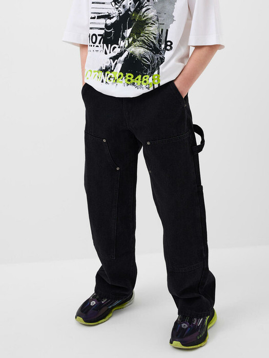 Это подростковые джинсы свободного покроя с прямыми и широкими штанинами для мальчика подростка. Выполнены из плотного хлопкового денима. Джинсы застёгиваются на молнию и болт, внутри пояса есть эластичная лента с пуговицей для регулировки. Боковые и задние карманы. На заднем кармане размещён декоративный шеврон с белым принтом.