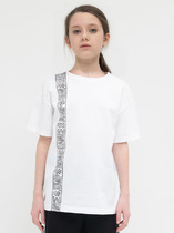 Футболка детская модная. Модель из качественного и приятного на ощупь трикотажа джерси. Футболка с высоким содержанием хлопка 95%. Благодаря наличию эластана в составе ткани изделие проще в уходе и держит форму.  Модель из капсульной коллекции CATS DREAM. Соберите полный образ в едином стиле!    Модель выполнена из качественного и приятного на ощупь трикотажа.