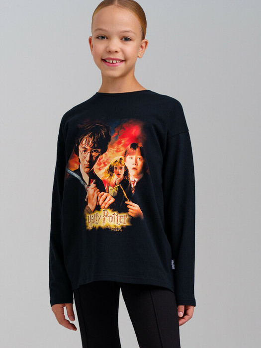 Футболка модная с длинным рукавом для девочки подростка. Лонгслив оверсайз с высоким содержанием хлопка 95%. Благодаря наличию эластана в составе ткани изделие проще в уходе и держит форму.  Модель из капсульной коллекции BLACK CHIC (БЛЭК ШИК). Соберите полный образ в едином стиле!  Модель выполнена из качественного и приятного на ощупь трикотажа.