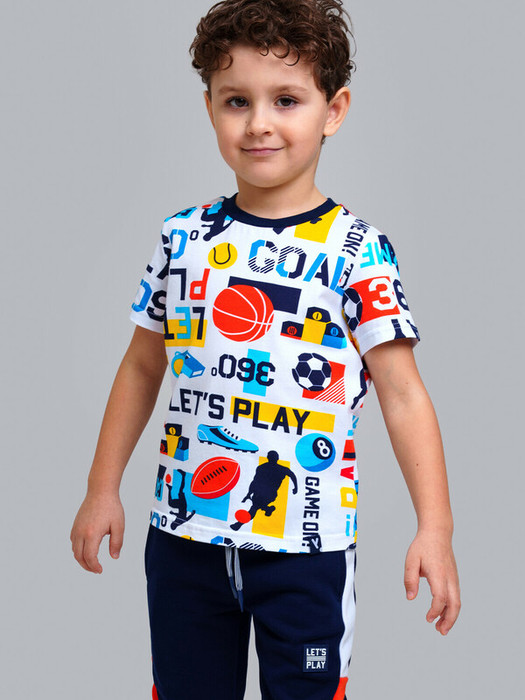 Футболка детская для мальчика. Футболка из качественного и приятного на ощупь трикотажа джерси с высоким содержанием хлопка 95%. Благодаря наличию эластана в составе ткани изделие проще в уходе и держит форму. Модель выполнена из качественного и приятного на ощупь трикотажа.