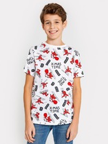 Футболка с принтом Disney из качественного приятного на ощупь трикотажа. Размер изделия на фото - 110, параметры модели (см): рост 110, обхват груди-талии-бедер: 58-47-61. Высокое содержание хлопка 95%. Благодаря наличию эластана в составе ткани, изделие проще в уходе и держит форму.