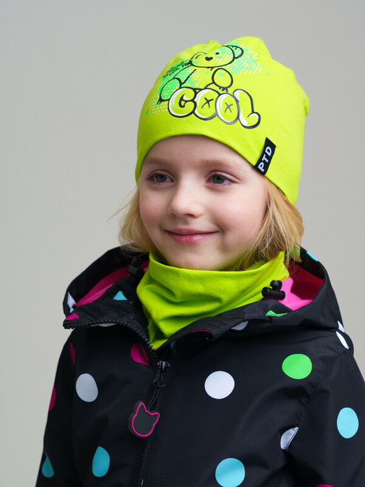 Комплект детский для девочки: шапка, снуд.  Высокое содержание хлопка. Благодаря наличию эластана в составе ткани изделие проще в уходе и держит форму.