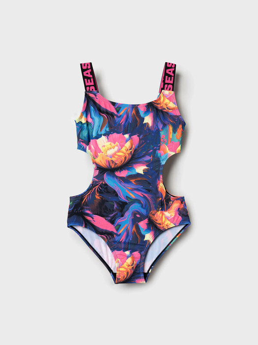 Купальник слитный для девочки подростка. Яркий купальник с оригинальным дизайном — открытые бока и глубокий вырез на спине придают изделию современный и спортивный вид. Модель выполнена из эластичной ткани с насыщенным многоцветным принтом в стиле абстрактных цветов. Бретели украшены жаккардовой тесьмой с надписями. Купальник дополнен мягкой подкладкой. Со 146 размера предусмотрены мягкие съемные чашки. По краям используется эластичная тесьма для комфортной посадки. Благодаря UF-защите, ткань сохраняет первоначальный вид даже при длительном пребывании на солнце. Идеально подойдет для пляжа и бассейна.