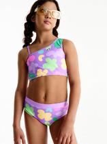 Детский купальник для девочки. Модель выполнена в нежно-розовом цвете и украшена объемными цветочными рюшами, которые создают яркий и праздничный образ. Топ на регулируемых бретелях. Плавки на подкладке средней посадки, также декорированы рюшами по талии. Все края обработаны эластичной тесьмой, чтобы изделие хорошо сидело на теле и не натирало. Благодаря UF-защите, ткань сохраняет первоначальный вид даже при длительном пребывании на солнце. Идеально подходит для пляжа и отдыха летом.