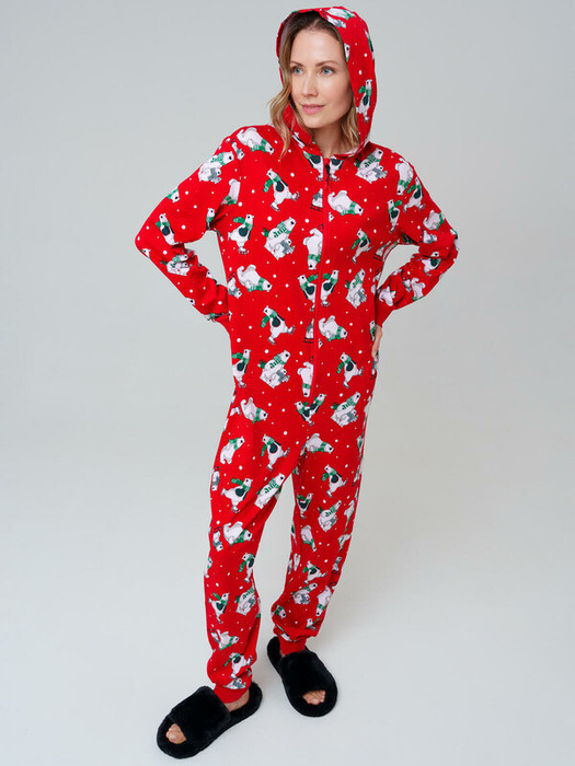 Пижама-комбинезон для мужчин и женщин от PlayToday — тёплая, мягкая и яркая, как праздник. В ней одинаково удобно спать, отдыхать дома или проводить уютные зимние вечера в компании семьи.
