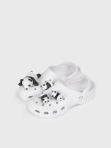 Трендовые сабо для девочки подростка в черно-белой гамме. Шлепанцы выполнены из облегченного и прочного ЭВА. Материал хорошо моется. Модель украшена фирменными джибицами. Форма модели учитывает эргономику стопы. Модель имеет перекидной ремешок для лучшей фиксации обуви на ноге.
