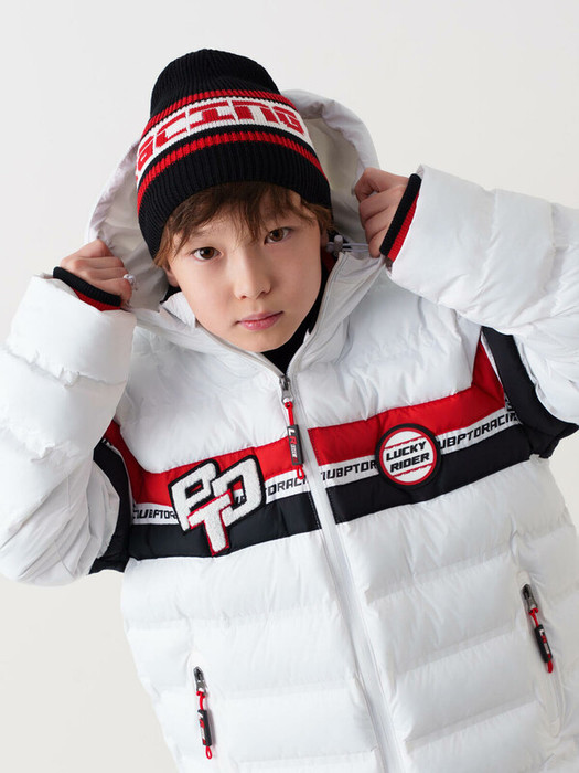 Шапка вязаная для мальчика подростка. Изделие выполнено с ярким надписным элементом "RACING". Имеет плотную одинарную вязку с эластичной резинкой по нижнему краю, обеспечивая плотное прилегание к голове и защиту от холода. На задней части шапки декоративные горизонтальные полосы.