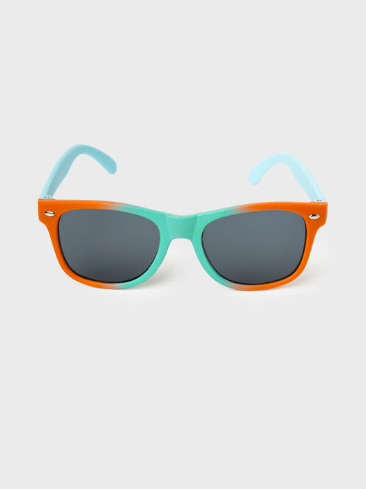 Яркие солнцезащитные очки для мальчика. Оправа имеет интересное градиентное окрашивание. Солнцезащитные очки с фильтром Cat3.  Темные линзы имеют защиту UV400, которая отражает 100% ультрафиолетовых лучей с длиной волны менее 400 нанометров, эффективно блокируя все ультрафиолетовые лучи при солнечном свете. Ширина оправы - 125 мм, длина дужки - 125 мм. Обхват головы 50-52 см. Такие очки эффективны для защиты глаз в тропиках, у моря и в горах. В комплект входит фирменный текстильный чехол из микрофибры, с помощью которого легко ухаживать за изделием. Очки транспортируются в картонной коробке.