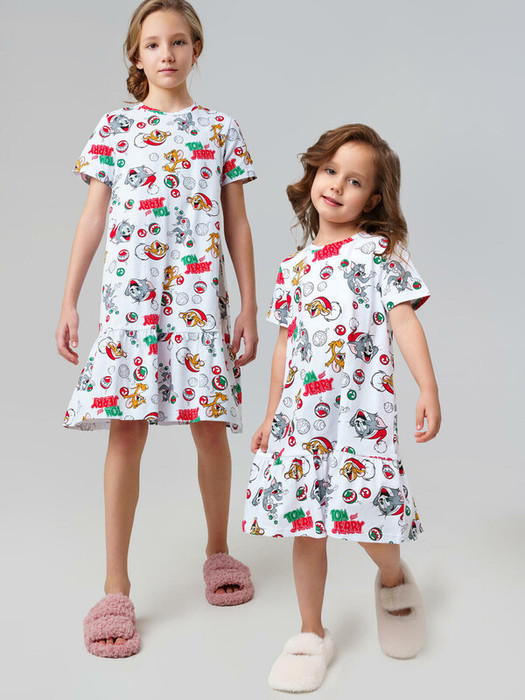 Мягкая и яркая ночная сорочка для девочки с Том и Джерри от PlayToday — лучшее решение для комфортного сна и домашнего уюта.