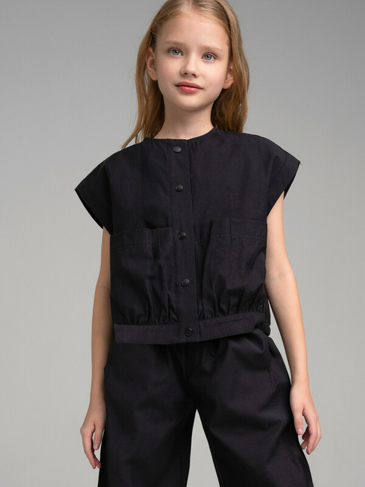 Жилетка для девочки подростка. Укороченный жилет. Модный силуэт оверсайз. Застежка на кнопки. Удобные карманы. Ткань с матовым эффектом. По низу резинка.