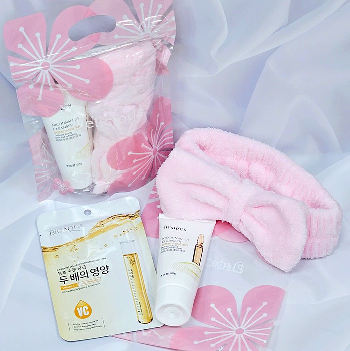 Совместные покупки Челябинск Косметика и парфюмерия Прочий макияж — Подарочный набор в zip-пакете "Розовые Цветы" (Пенка + Маска + Повязка)