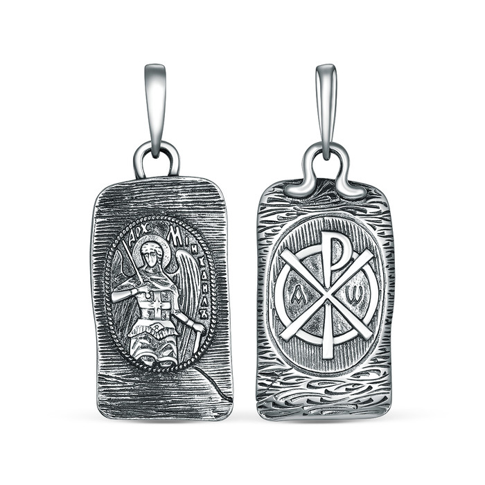 Подвеска из чернёного серебра - Архангел Михаил, Хризма Пч-003