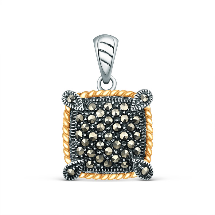 Подвеска из чернёного серебра с марказитами и золочением MN00741оз
