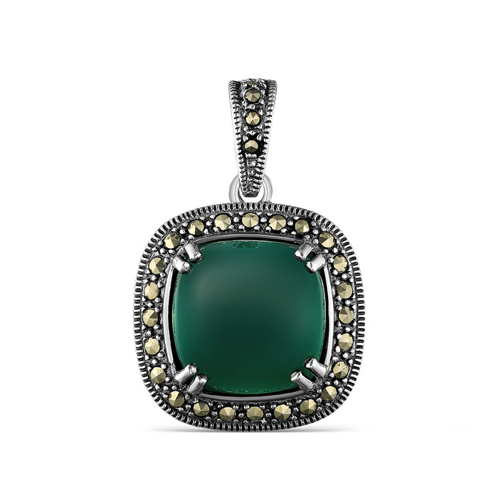 Совместные покупки Челябинск Ювелирные украшения и бижутерия Подвески — Подвеска из чернёного серебра с нат. агатом и марказитами 925 пробы MN00675G-AG-