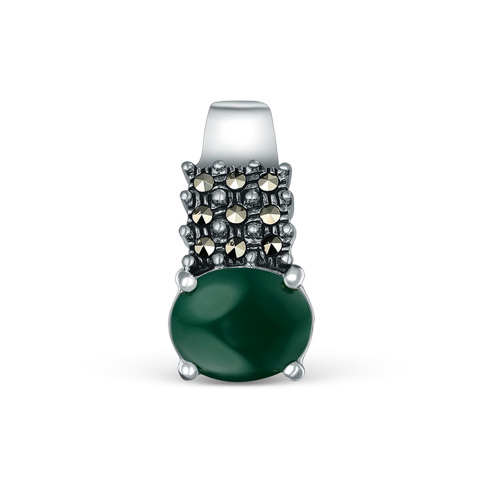 Совместные покупки Челябинск Ювелирные украшения и бижутерия Подвески — Подвеска из чернёного серебра с зелёным агатом и марказитами GAP3100аз