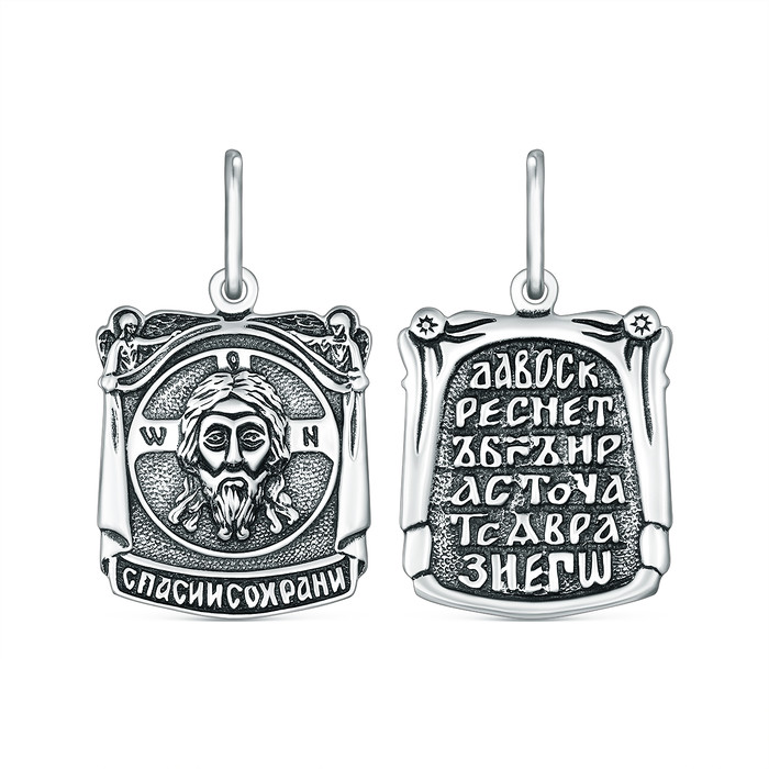 Подвеска из чернёного серебра - Спаси и сохрани, Да воскреснет Бог П-128ч
