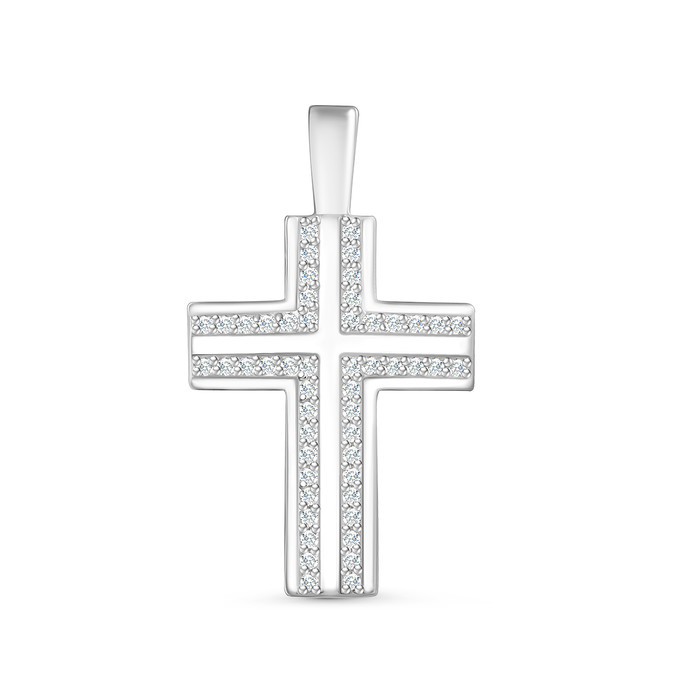 Подвеска из серебра с фианитами родированная - Крест 925 пробы П-2775-Р