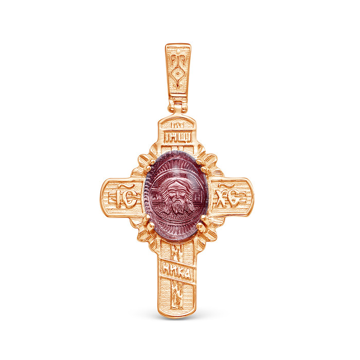 Совместные покупки Челябинск Ювелирные украшения и бижутерия Подвески — Подвеска-крест из золочёного серебра с пл.кварцем цв.аметист - Спаситель 925 про