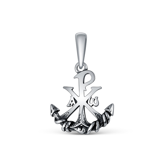 Подвеска религиозная из чернёного серебра - Хризма-якорь 925 пробы П-2535о