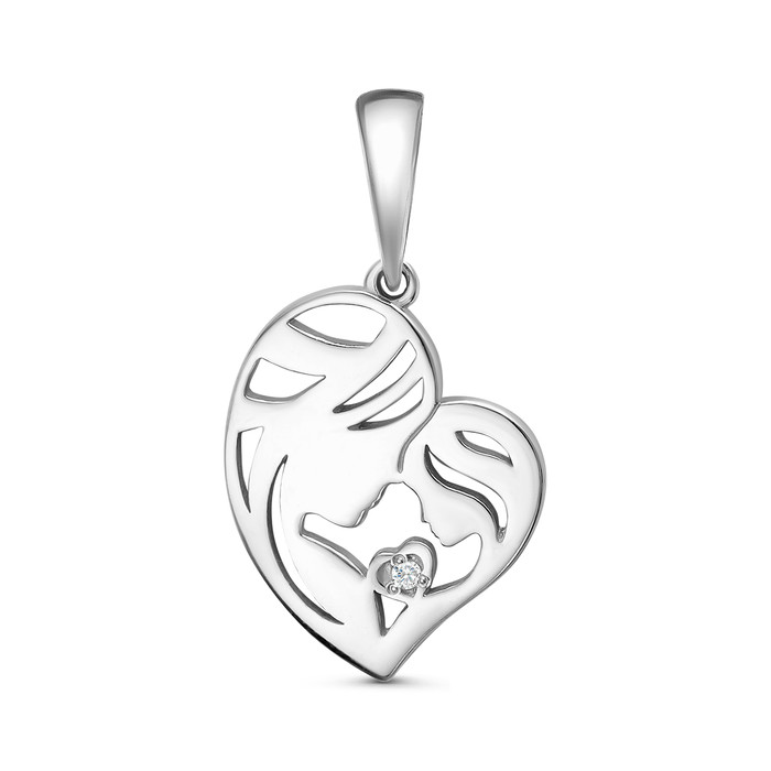 Совместные покупки Челябинск Ювелирные украшения и бижутерия Подвески — Подвеска сердце из серебра с фианитом родированная - Мать и дитя 925 пробы 13-03