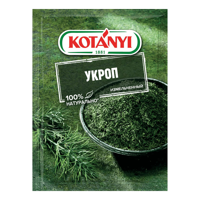 Во всем мире укроп любят за его интенсивный, освежающий, сладковатый вкус, который невозможно ни с чем перепутать. Благодаря особому бережному способу сушки, вкус укропа Kotanyi в полной мере раскрывается при контакте с водой или маслом. Применение: укроп прекрасно подходит к супам, овощным гарнирам, омлетам, соусам, морепродуктам, рыбе, салатам.