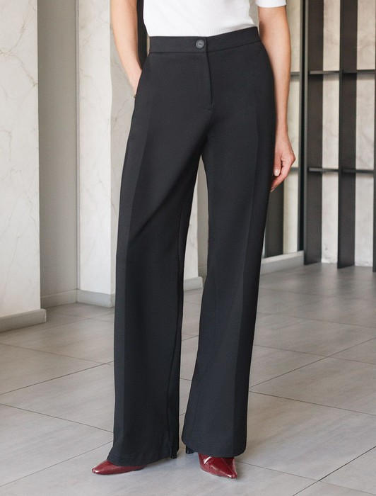 Состав: 50%Хлопок 30%ПУ 20%ПЭ Плотность: 390 Г/м2Прямые брюки выполнены из трикотажа джерси. Модель дополнена боковыми карманами и поясом на резинке сзади. Заутюженные стрелки визуально вытягивают силуэт. Изделие хорошо держит форму, отлично тянется и почти не мнется во время использования. Идеальный вариант в офис или в повседневный классический стиль.