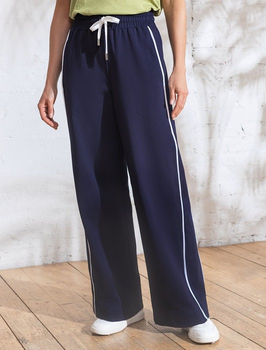 Состав: 95%Хлопок 5%ПУ Плотность: 240 Г/м2Прямые брюки темно-синего цвета выполнены из премиального футера двухнитки с эластаном плотностью 240 Г/м2. Повседневные брюки сочетают в себе комфорт и оригинальность. Брюки выполны из натурального хлопка, который обеспечивает мягкость и дышащие свойства ткани. Нежный материал дарит ощущение уюта в любое время года, а премиальное качество изготовления гарантирует долговечность и сохранение формы после множества стирок. Лампасы добавляют динамики и вытягивают силуэт. Удобный пояс на резинке регулируется хлопковым шнурком. Юлагодаря свободному прямому крою, брюки подойдут на любую фигуру, а так же большие размеры, включая 56. В этих спортивных брюках вы будете чувствовать себя уверенно, наслаждаясь каждым моментом дня.