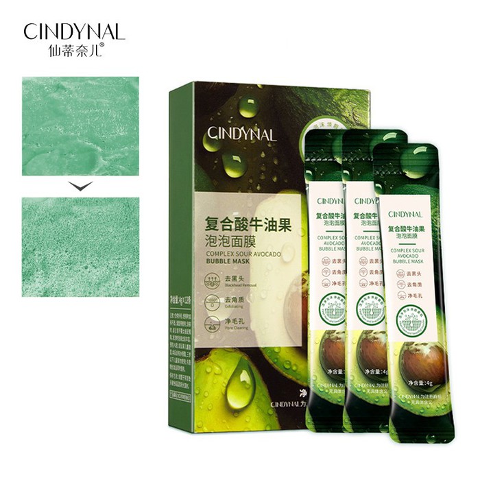 Пузырьковая маска для лица с экстрактом АВОКАДО Cindynal, НАБОР 12 ШТ. по 4 мл.