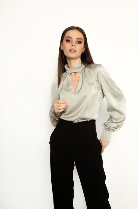 Блуза с перекрутом на стойке.