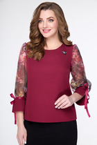 Блуза из хлопкового ришелье. Детали: полуприлегающий силуэт, вырез переда и спинки фигурной формы, спинка со средним швом и потайной застежкой-молнией, укороченные рукава, блуза на подкладке