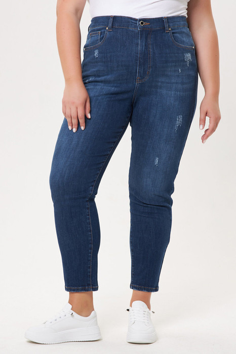 Джинсы силуэта "Slim" высокой посадки с резинкой, регулирующей объем пояса по спинке, с застежкой на пуговицу и молнию. Синяя варка с "Родео" спереди и с царапками спереди и сзади. Благодаря включению вискозы в состав ткань имеет очень приятные тактильные ощущения и обеспечивает отличную посадку на любой тип фигуры. Предлагаем комбинировать как с классическими блузками, так и с футболками и свитшотами.