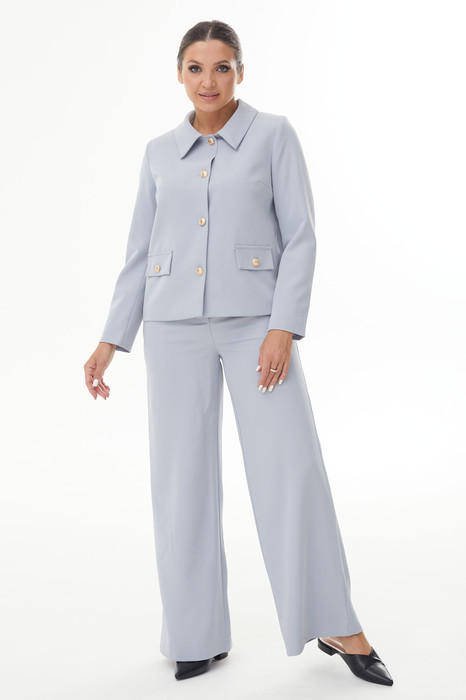 светло-серая двойка (жакет с рубашечным воротником и золотыми пуговицами +палаццо)