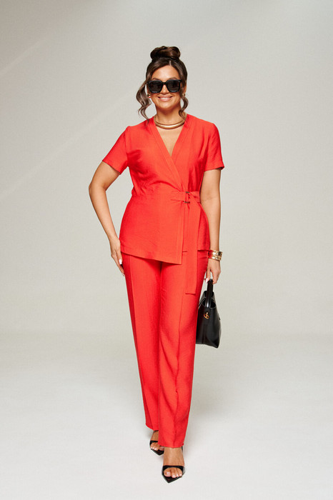 Нарядно-повседневный костюм, состоящий из жакета и брюк, предназначен для повседневного использования, выполнен из ткани лён с содержанием вискозы.