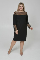 Платье с юбкой полусолнце и поясом в комплекте. Резинка по линии талии. Вырез-трапеция. Длинный рукав с резинкой по манжете.