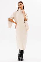 Платье прилегающего силуэта из трикотажного полотна. Воротник стойка. Застежка в среднем шве спинки на потайную молнию. Слева разрез 29см. Рукав длинный с отверстием для большого пальца. По переду вырез асимметричной формы с открытым левым плечом.