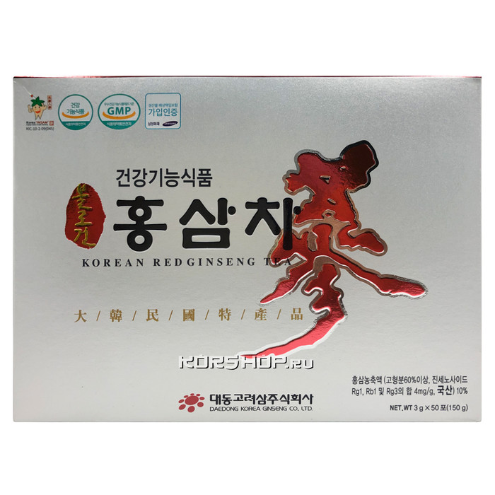 Растворимый женьшеневый чай с глюкозой, витамином С и экстрактом женьшеня – это замечательный, полезный для здоровья напиток. Он позволит в значительной степени укрепить иммунитет и обеспечит профилактику различных заболеваний. Женьшень является сильнейшим природным адаптогеном, поэтому продукт рекомендуется употреблять для снижения последствий стрессов. Купить растворимый женьшеневый чай с глюкозой, витамином С и экстрактом женьшеня (4-5 лет) с доставкой на дом по Москве и Подмосковью можно в интернет-магазине KorShop.ru.