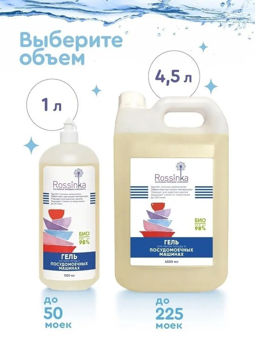 Гель для мытья посуды в посудомоечной машине на основе поверхностно-активных веществ растительного происхождения быстро растворяется и удаляет сильные загрязнения.
