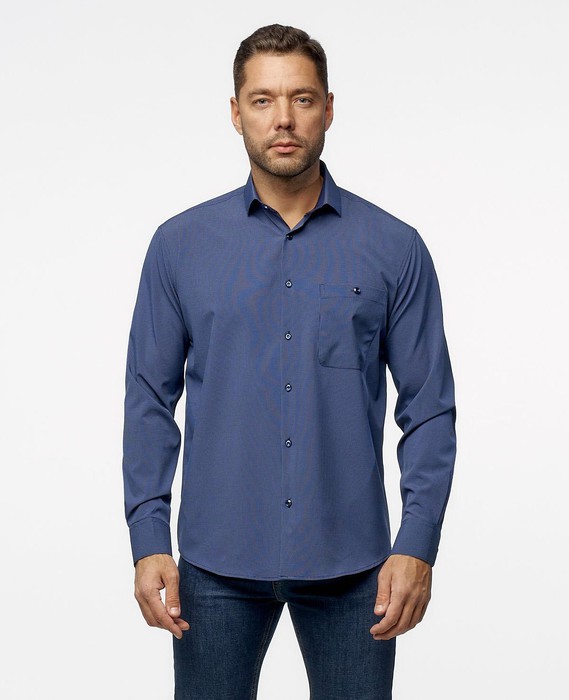Мужская рубашка классического кроя в мелкую клетку. Имеет функциональный нагрудный карман, выполнена из легкой, комфортной к телу ткани.