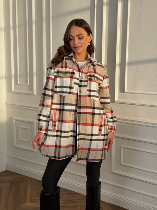 Рубашка DilanaVIP 2127 бежевая клетка