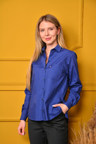 Рубашка «мужского» кроя без вытачек. Рукав втачной с манжетой на 2 петли и пуговицы. Воротник отложной со стойкой. Кокетка на спинке, спинка со складкой. Низ прямой, по бокам разрезы. Спинка длиннее переда.
