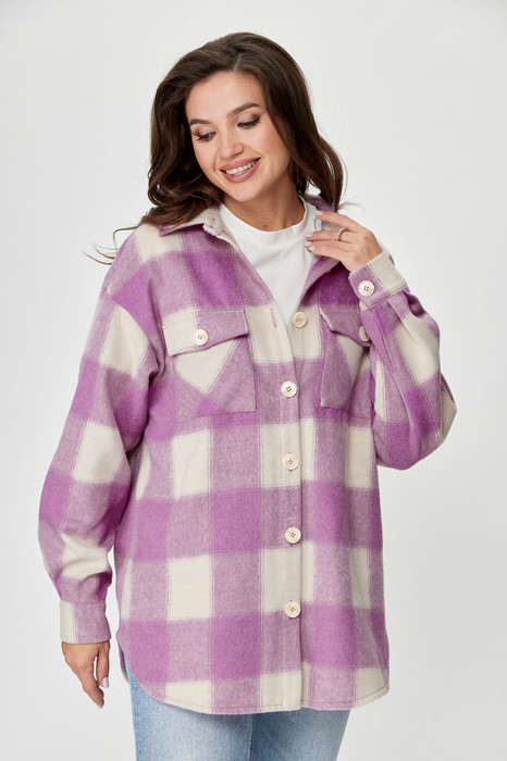 Рубашка женская, повседневная, прямого свободного кроя, из приятного мягкого материала в крупную клетку  займет важное место в вашем гардеробе. Рубашка с центральной застежкой по переду на петли/ пуговицы и длинным втачным рукавом на манжете. По переду два накладных кармана с клапанами. По спинке плечевая фигурная «уголком» кокетка с клеткой по косой. Рубашка с фигурным низом, длиной ниже бедра. Длина изделия по спинке 77 см+-1см, длина рукава от горловины 75см+-1см. Изделие подойдт на рост 170см.