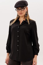 Рубашка прямого силуэта с фигурным низом. Выполнена застежка на петли и пуговицы. По горловине стояче-отложной воротник с отрезной стойкой. По спинке кокетка и склада на свободу движения. Рукав рубашечного кроя.Перед рубашки декорирован дизайнерской вышивкой.