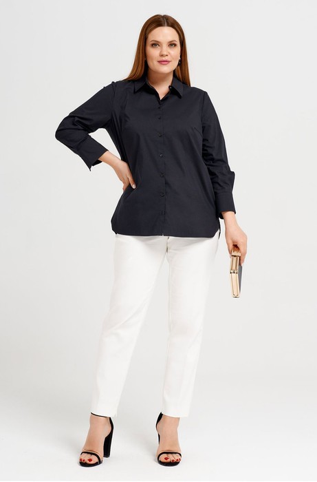Стильная блузка из хлопковой ткани. В блузке сделан акцент на офисный стиль, классика. Блузка полуприлегающего силуэта, с застежкой на потайную планку, с нагрудными вытачками по переду, на спинке кокетка, рукава удлиненные на манжете.