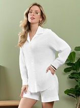 14.04 Vilatte Укороченная блузка из эластичного хлопка D29.322 белый-голубой