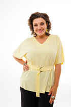 Рубашка (туника) молодежная из трикотажного полотна «флис» с эффектом «варенки», полуприлегающего силуэта, с длинными втачными рукавами на притачных манжетах, стояче-отложным воротником, нагрудным карманом, фигурным низом и центральной бортовой застежкой на петли и пуговицы. Спинка – с отрезной кокеткой и бантовой складкой в центре соединительного шва.