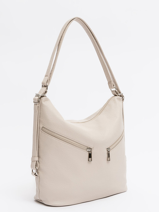 Мягкая форма легко превращается из стильного хобо в удобный рюкзак, подстраиваясь под ваши потребности. Просторное основное отделение с внутренней перегородкой-карманом и двумя диагональными карманами на молнии спереди обеспечивает идеальный порядок для всех вещей. Эти карманы не только функциональны, но и придают сумке современный динамичный вид. Незаменимый вариант для тех, кто ценит свободу выбора и практичность в каждой детали — носите её как угодно и куда угодно.